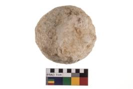 | Description / विवरण | A partially broken specimen of roughly round shaped hammer stone with battered periphery along with the circumference. |