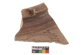 | Description / विवरण | Specimen of black on red ware with black decorative geometric painting. |