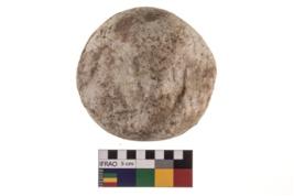 | Description / विवरण | A partially broken specimen of roughly round shaped hammer stone with battered periphery along with the circumference. |