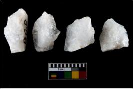 | Description / विवरण | There are n-4 of intact utilized flakes made up of Quartz. Some of them have bulge of percussion and some are flat flakes. |