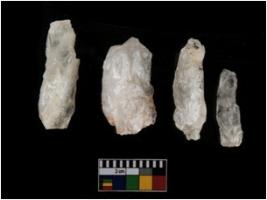 | Description / विवरण | There are n-4 of Cores. All are made of Chert. All are fully fluted cores. 3 with trace of crested ridge flake. |