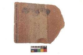 | Description / विवरण | Specimen of black on red ware with black decorative Circles between lines geometric painting. |