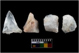 | Description / विवरण | There are n-4 of intact utilized flakes made up of Quartz. Some of them have bulge of percussion and some are flat flakes. |
