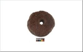 | Description / विवरण | A plain pottery disc with perforation.It is reddish in colour. It has eroded edges. |