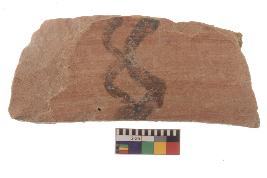 | Description / विवरण | Specimen of black on red ware with black decorative Wavy lines geometric painting. |
