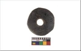 | Description / विवरण | A plain pottery disc with perforation.It has burnished black colour. It has eroded edges. |
