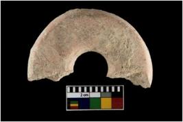 | Description / विवरण | A half broken specimen of a terracotta Spindle whorl. |