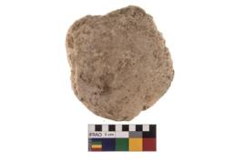 | Description / विवरण | A partially broken specimen of roughly round shaped hammer stone with battered periphery along with the circumference. |