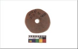| Description / विवरण | A plain pottery disc with perforation.It is reddish in colour. It has eroded edges. |