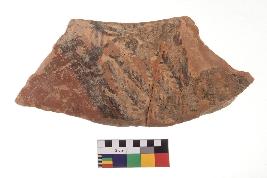 | Description / विवरण | Specimen of black on red ware with black decorative natural painting. |