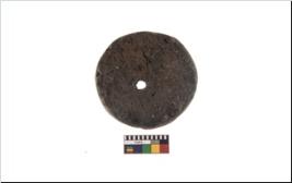 | Description / विवरण | A plain pottery disc with perforation.It is brownish in colour. It has eroded edges. |