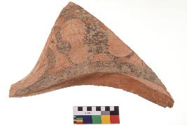 | Description / विवरण | Specimen of black on red ware with black decorative Joint circles intersecting dots geometric painting. |