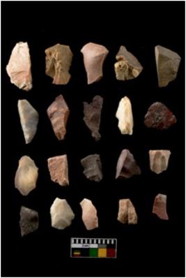 | Description / विवरण | There are n-20 of intact flake cores made up of Chert. Some of them have bulge of percussion and some are flat flakes. |