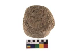 | Description / विवरण | A partially broken specimen of roughly round shaped hammer stone with battered periphery along with the circumference. |