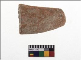 | Description / विवरण | A partially broken speciemen of a stylized straight horn of a bull figurine made up of fine clay, well fired. Tip of the horn is flat. It is crude, reddish in colour. Lower portion of the horn is broken. |