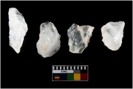 | Description / विवरण | There are n-4 of intact utilized flakes made up of Quartz. Some of them have bulge of percussion and some are flat flakes. |