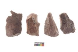 | Description / विवरण | Four worked utilised flakes. Many a times tapering at one end. |