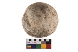 | Description / विवरण | A partially broken specimen of roughly round shaped hammer stone with battered periphery along with the circumference. |