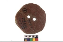 | Description / विवरण | A plain pottery disc with double perforation.It is reddish in colour. It has eroded edges. |