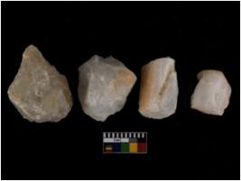 | Description / विवरण | There are n-4 of Cores. All are made of Quartz. All are fully fluted cores with trace of crested ridge flake. |