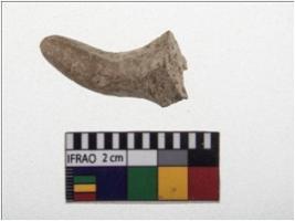 | Description / विवरण | A partially broken speciemen of a stylized curved horn of a bull figurine made up of fine clay, well fired. Tip of the horn is slightly curved. It is smooth in texture, reddish in colour. Lower portion of the horn is broken. |
