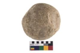 | Description / विवरण | Complete specimen of a hammer stone with battered surface made from quartz |