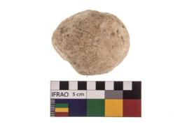 | Description / विवरण | A partially broken specimen of roughly round shaped hammer stone with battered periphery along with the circumference. |