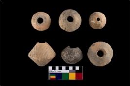 | Description / विवरण | There are n-6 of beads. All are made up of Terracotta. Out of these, 4 are intact and 2 are broken. They vary in shape. Out of 4 beads, 3 are biconvex, 2 are flat base truncated top and 1 is squat bicone. |