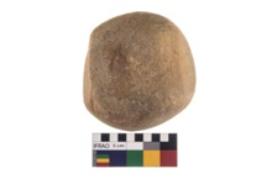 | Description / विवरण | Complete specimen of a hammer stone with battered surface made from quartzite |