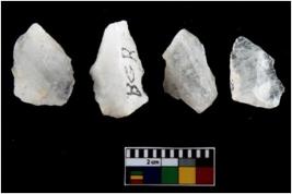 | Description / विवरण | There are n-4 of intact utilized flakes made up of Quartz. Some of them have bulge of percussion and some are flat flakes. |