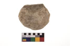 | Description / विवरण | A partially broken specimen of roughly round shaped hammer stone with battered periphery along with the circumference. |