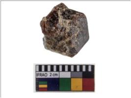 | Description / विवरण | A complete specimen of a gemstone garnet with bevelled sides with an octagonal cross-section. |