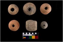 | Description / विवरण | There are n-6 of beads. All are made up of Terracotta. All of them are intact. They vary in shape. Out of 6 beads, 1 is short cylindrical, 1 is globular and 4 are biconvex. |