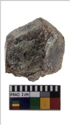 | Description / विवरण | A complete specimen of a core of gemstone garnet with bevelled sides with an octagonal cross-section. |