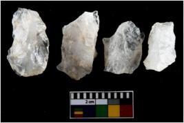 | Description / विवरण | There are n-4 of intact utilized flakes made up of Quartz. Some of them have bulge of percussion and some are flat flakes. |