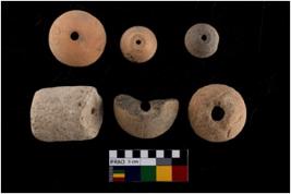 | Description / विवरण | There are n-6 of beads. All are made up of Terracotta. All of them are intact. They vary in shape. Out of 6 beads, 3 are flat base sloping shoulders truncated top, 2 are biconvex and 1 is cylindrical. |