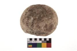 | Description / विवरण | A partially broken specimen of roughly round shaped hammer stone with battered periphery along with the circumference. |