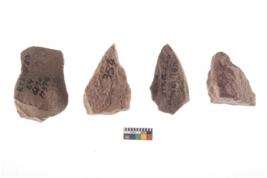 | Description / विवरण | Four worked utilised flakes. Many a times tapering at one end. |