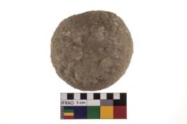 | Description / विवरण | A partially broken specimen of roughly round shaped hammer stone with battered periphery along with the circumference. |