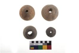 | Description / विवरण | There are n-4 of beads. All are made up of Terracotta. Out of them 3 are intact and 1 is partially broken. They vary in shape. Out of 4 beads, 1 is flat base straight sides truncated top, 1 is biconvex, 1 is globular and 1 is an irregular disc. |