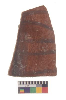 | Description / विवरण | Specimen of red ware with decorative red pigment. |