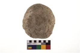 | Description / विवरण | A partially broken specimen of roughly round shaped hammer stone with battered periphery along with the circumference. |