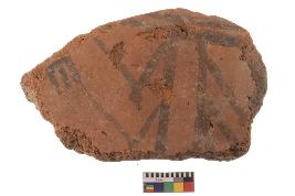 | Description / विवरण | Specimen of black on red ware with black decorative geometric painting. |