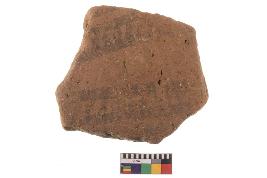 | Description / विवरण | Specimen of black on red ware with black decorative Parallel horizontal lattice geometric painting. |