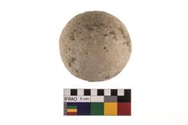 | Description / विवरण | A partially broken specimen of roughly round shaped hammer stone with battered periphery along with the circumference. |