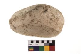 | Description / विवरण | A partially broken specimen of roughly round shaped hammer stone with battered periphery along with the circumference. |