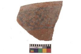 | Description / विवरण | Specimen of black on red ware with black decorative Lattice pattern geometric painting. |