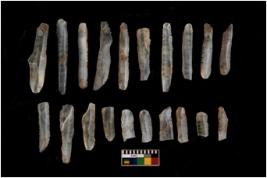 | Description / विवरण | There are n-20 of microliths. All are made up of Chalcedony. All of them are intact. They show variation in size and shape. Some of them are blunted back blades, crescent and truncated blades. All blades have retouched sides. |