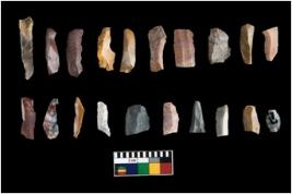 | Description / विवरण | The total number of specimens are n 20 of chert. They bladets with marginal retouch and backet bladets. The blades have a flat dorsal surface, and double ridges going parallel to its length. Some of the microliths have steep retouch at their tip. the specimens show low proportions. |