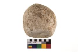 | Description / विवरण | A partially broken specimen of roughly round shaped hammer stone with battered periphery along with the circumference. |